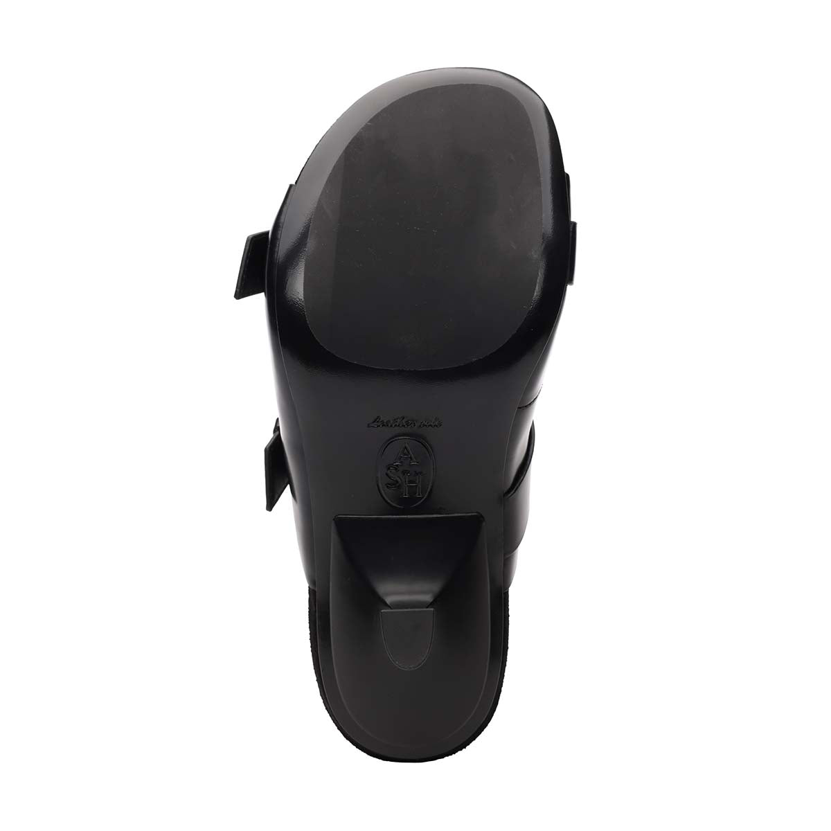 JEWEL is a comfy take on leather heeled sandals. These black kitten heel sandals have an easy slip-on double band design with a contoured footbed. With signature ASH buckles and a sleek black leather upper, this heeled sandal can take you from day to night.