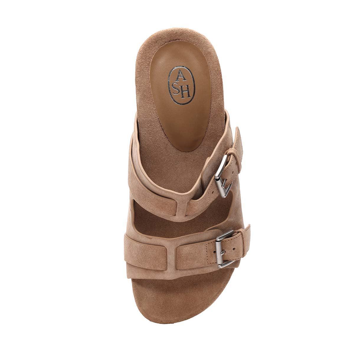 Meet JEWEL, our comfy take on suede heeled sandals. These easy slip-on kitten heel sandals have a double-band design and a contoured footbed. With signature ASH buckles and a soft suede upper, this sandal can take you from day to night.