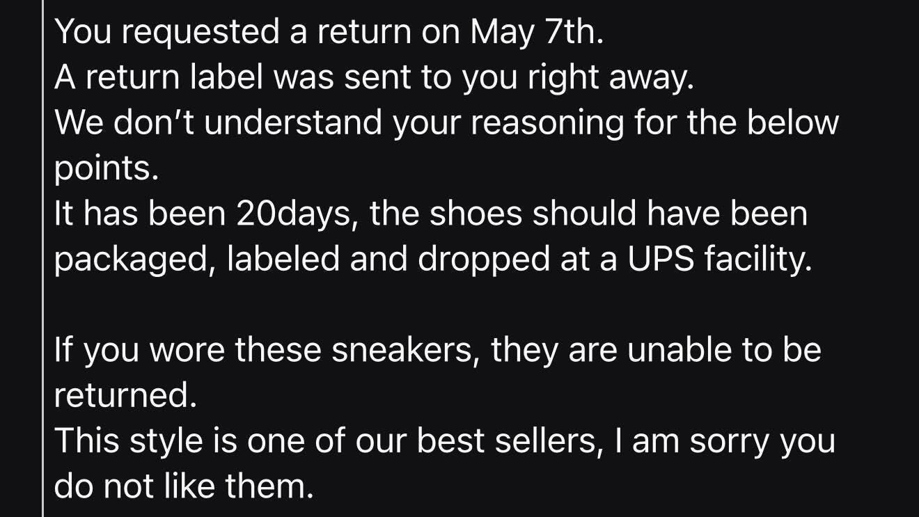 But the customer service here is something else. I emailed them with all my reasons and explanations for a refund or ANY type of compensation, feeling that $200+ for sneakers that aren’t accurate and are painful were not fair. They said ok, but gave so much attitude with each response. The first response asked me a question that I had spent a paragraph answering in my initial email. I wish they read my email carefully or with basic effort. We went back and forth a couple times, and they never addressed the fact that the product picture isn’t even correct. I told them to change it too, and they ignored me.