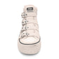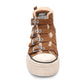 Turn heads with the Rainbow Hightop Sneaker, a rebellious twist on a classic silhouette. Designed with bold buckle straps, distressed detailing, and a chunky platform sole, this sneaker brings serious edge to your everyday look. Lined with soft faux fur for extra warmth and comfort, it's the perfect mix of grunge and cozy. Whether you're styling it with denim or offsetting a sleek outfit, the Rainbow Hightop makes a fearless fashion statement.
