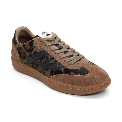 Bring out your wild side with the Sunset Fandango Leopard Sneaker. Featuring bold leopard-print pony hair panels, earthy suede overlays, and a black leather “A” logo, this retro-inspired sneaker offers standout style with streetwear edge. A classic gum sole completes the vintage look while keeping comfort in step.